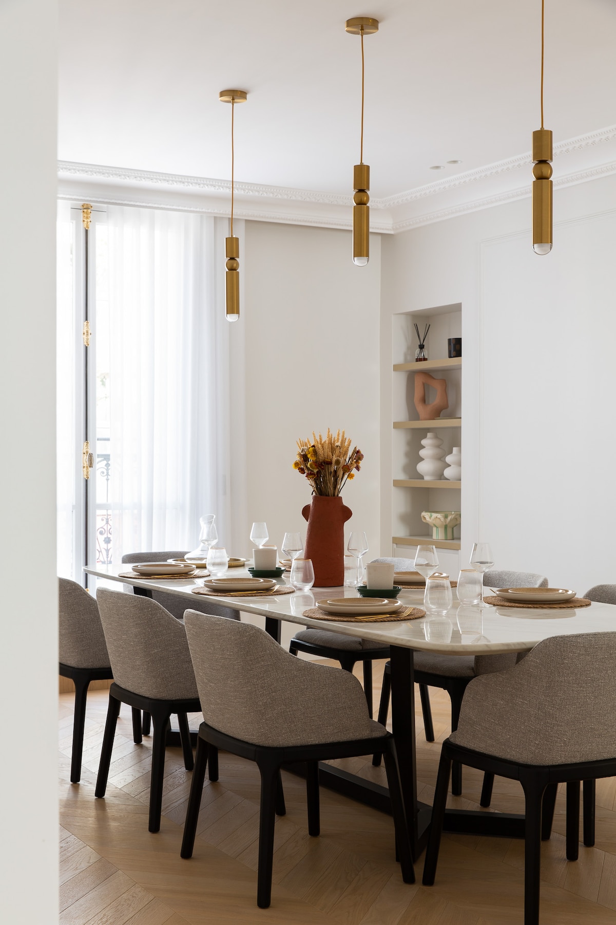 Carefully renovated and decorated by our interior designers, this apartment combines perfectly the codes of Parisian architecture and contemporary comfort. The space Welcome to this sumptuous 180sqm duplex apartment located a few steps from the Avenue des Champs-Elysées, in the heart of the prestigious Golden Triangle. Completely renovated by our architects in a sober and contemporary way, this apartment can accommodate up to 6 people. Upstairs is a gym, as well as a terrace connected to the master bedroom. The 3 bedrooms have king size beds with high quality mattresses, an en suite bathroom with walk-in shower. The bathroom connected to the master bedroom also has a spacious bathtub. The living room includes a fully equipped open kitchen, a pleasant dining area, and a spacious and bright living room to relax and share moments of conviviality with family or friends. To make your stay perfectly pleasant, a daily cleaning service is provided by our teams. Whether you are with family, friends or on a business trip, this luxury setting will offer you an incomparable setting for a memorable Parisian getaway. Enjoy your stay at HIGHSTAY! Guest access The HIGHSTAY team is at your disposal throughout your stay for any request. Other things to note For your convenience, each apartment is fully equipped (see list of amenities). Upon your arrival, you will find still and sparkling water, as well as a selection of coffees and teas. Our concierge team is at your disposal for any request: private chauffeur transfers, grocery shopping, restaurant recommendations, guided tours, and any other bespoke services. Registration Details 7511613274688