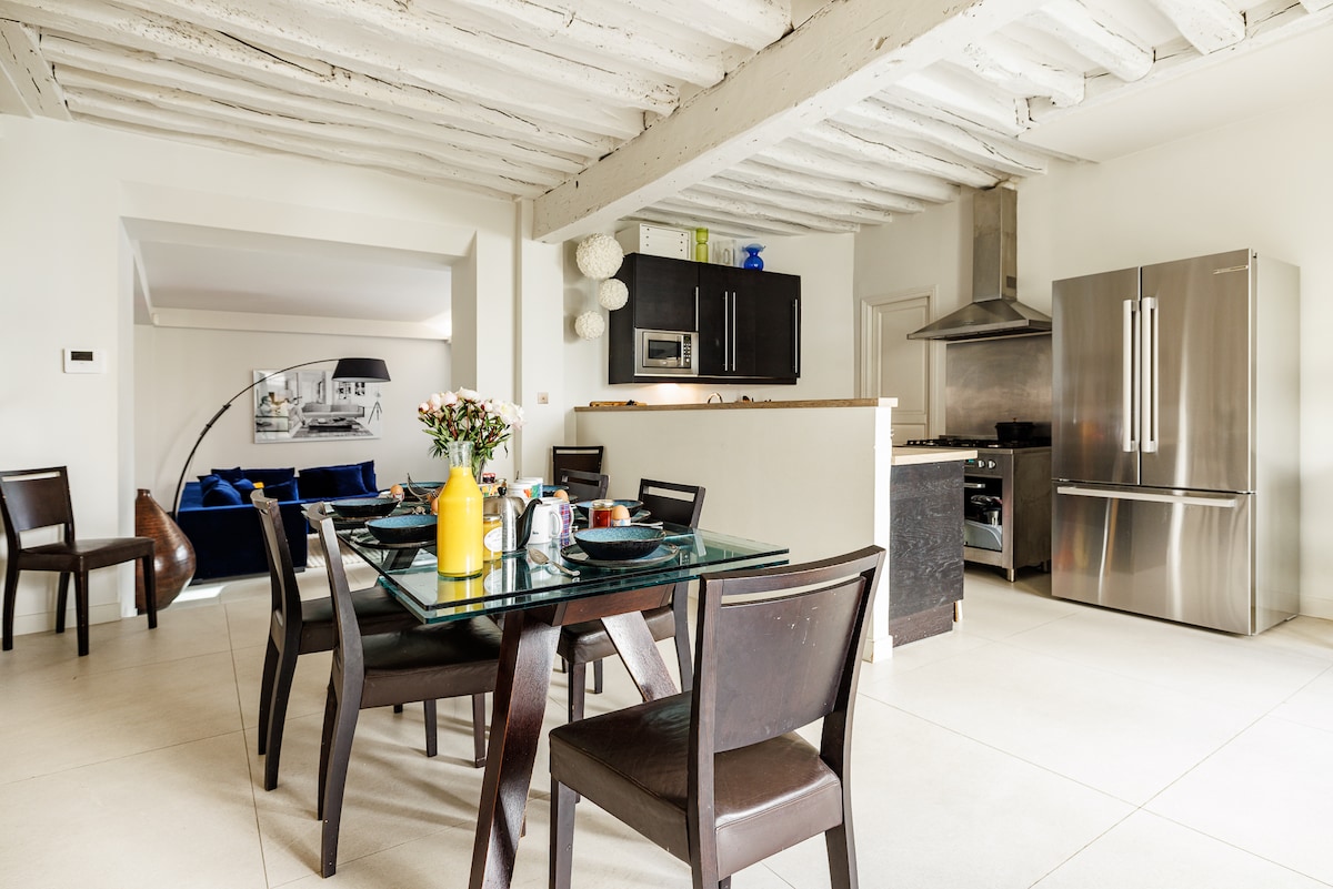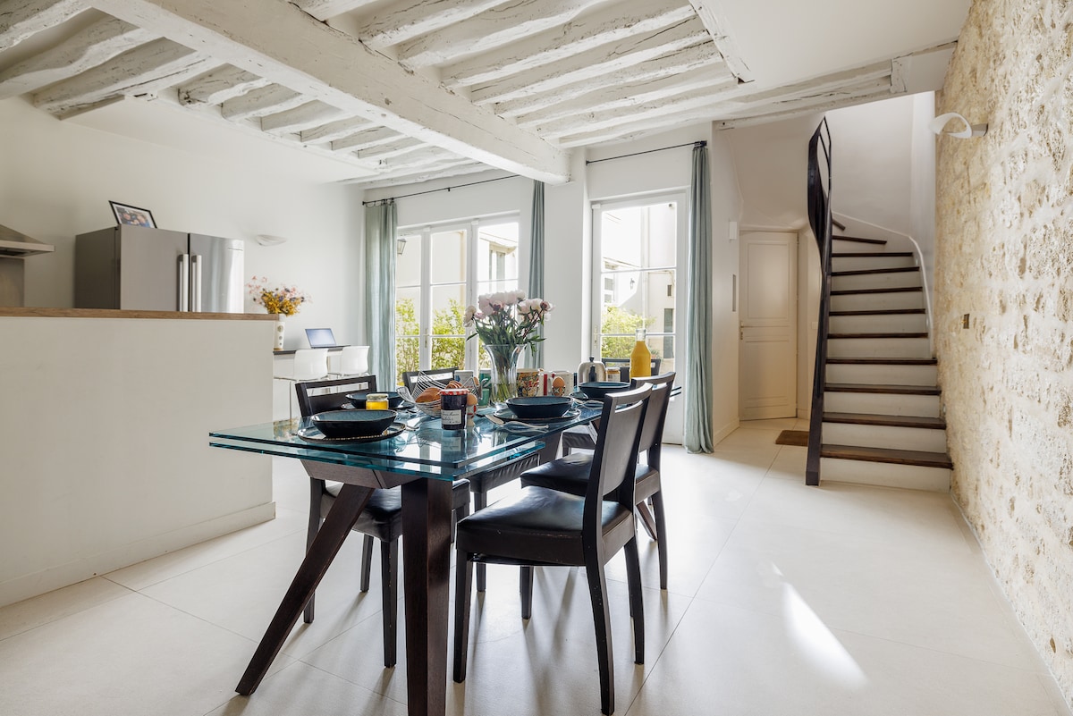 Prestigious 17th century house of 280 m2 and 70 m2 of terraces and outdoor spaces, organized on 3 floors and a finished basement. Located a 2-minute walk from the Esplanade des Invalides with stunning views of the Eiffel Tower from the terrace and bedrooms. A unique place of great standing, in the middle of Paris that will offer you a memorable stay. Nestled on a quiet street, with an inner courtyard, this timelessly elegant house is an exceptional place, away from prying eyes. The space 4 bedrooms, 3 bathrooms, 3 toilets, ideal accommodation for 6 people With 4 bedrooms and a location in the heart of the prestigious Rive Gauche district of Paris, this property is ideal for a stay with friends and family. The iconic places of Paris are all close to you. This 17th century building combines modern architecture with old world charm: stone walls, tiles and exposed beams. Its 4 floors, numerous storage spaces and large spaces offer you high-quality services. From the 25 m2 terrace on the 4th floor, you will have the Eiffel Tower in your sights. Don't miss the Iron Lady's twinkle every night. Paris, seems straight out of a fairy tale. Magical and enchanting! Interior spaces The 45 m2 living room offers a spacious and comfortable living space: piano, large sofas, works of art and direct access to the 25 m2 private and flowered courtyard The fully equipped kitchen is open to a 33 m2 dining room, family and warm. Alexandra, the lady of the house, will welcome you every morning with a delicious continental breakfast and adapt it according to your wishes. The dining/kitchen area is in direct access with the floors and overlooks a second inner courtyard in which you can store bicycles and strollers. In winter you will enjoy the comfort and cocooning of the place thanks to its underfloor heating. In summer, the stone walls of this building preserve the freshness of the place. On both floors are 4 bedrooms and 3 spacious bathrooms as well as plenty of storage The basement consists of two rooms: a 25 m2 vaulted cellar with stone walls and a fully renovated 60 m2 relaxation area: foosball, ping pong table, gym, home cinema and board games. Guest access you will have the entire house to yourself Registration Details 7510709329314