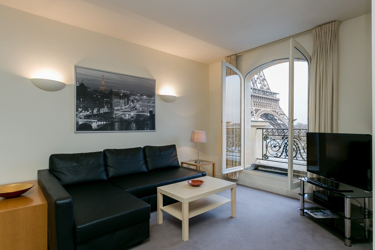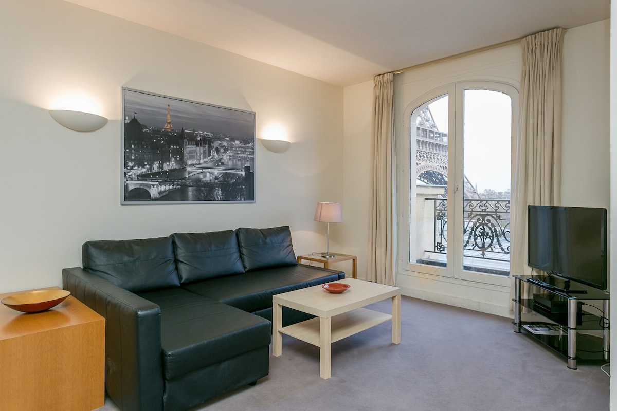 This warm space in the heart of Eiffel Tower area offers 3 bedrooms to accommodate up to 8 guests(the couch can be transform into a bed). All bedding and towels are top quality. This is an exquisite and rare property in one of the most desirable area The space This warm space in the heart of Eiffel Tower area offers 3 bedrooms to accommodate up to 8 guests(the couch can be transform into a bed). All bedding and towels are top quality. This is an exquisite and rare property in one of the most desirable areas of the city and is the perfect back drop for a luxurious holiday in Paris. Guest access TV, WIFI all included. Guest safe for valuables installed. Absolutly everything is furnished with the Eiffel Peak Apartment, you don't even need to take your bathrobe. Just enjoy Paris and discover a unique way to live. The apartment has 3 bedrooms with very confortable beds. With its 3 bathrooms, it offers a perfect combination for a family. The kitchen is fully furnished. We highly recommend this apartment if you are looking for a unique experience. Other things to note TV, WIFI all included. Guest safe for valuables installed. Registration Details Exempt - hotel-type listing