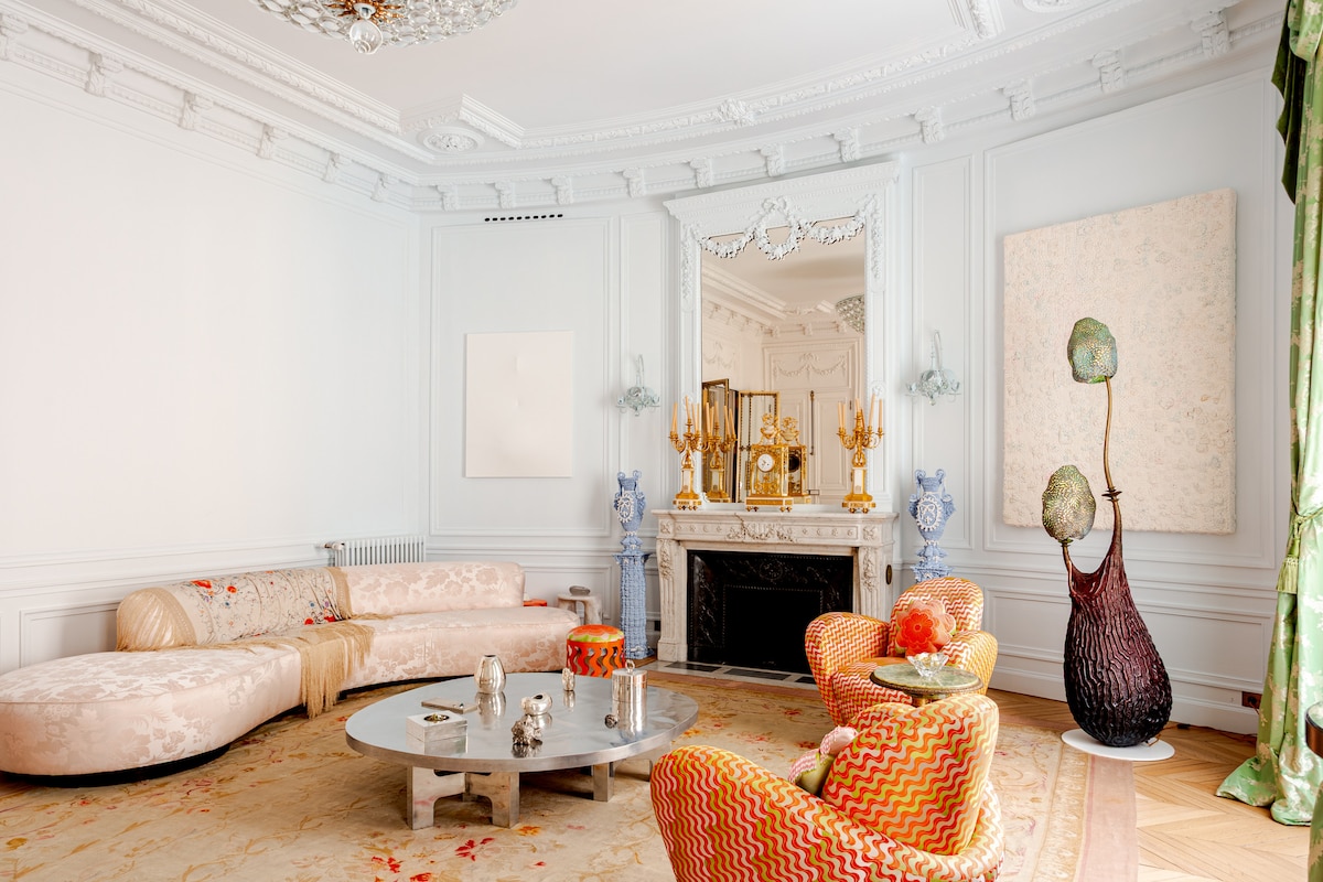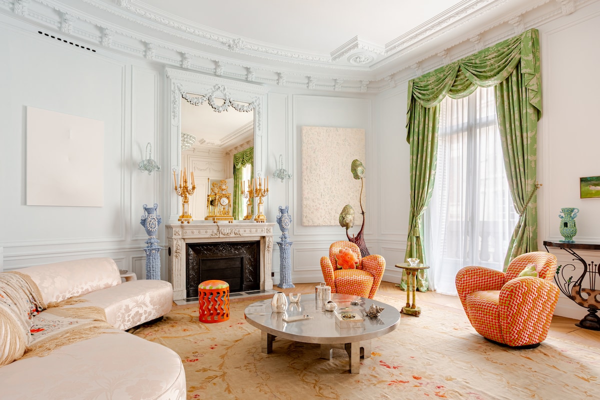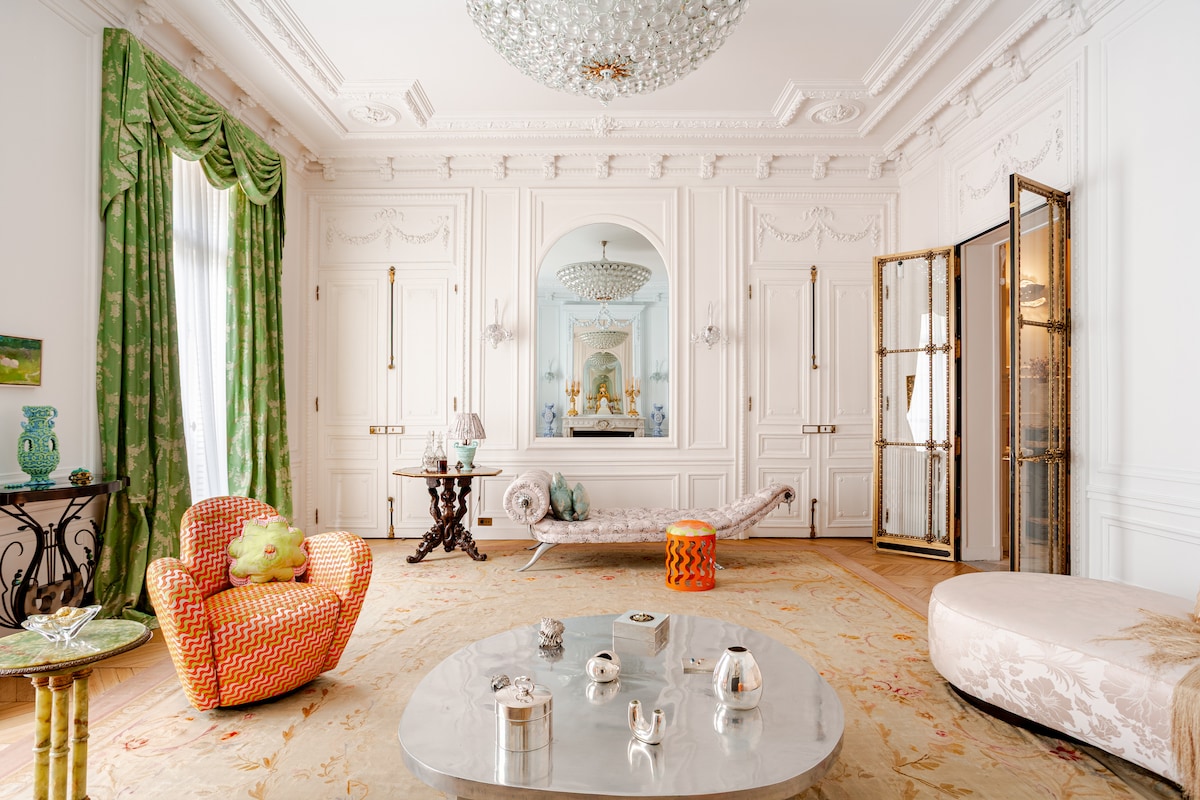 This extraordinary apartment blends grandeur with contemporary character. It offers a master suite with green marble bathroom and dressing, a guestroom "kid's room", and a TV lounge with lofted bed — with one full bathroom and two half baths. Living spaces include a grand salon, dining room, library, breakfast room, and a chef’s kitchen with state-of-the-art appliances. The space Exceptional Parisian Apartment in a Haussmannian Landmark. Set on the second floor with elevator access of a remarkable Haussmannian building, this extraordinary apartment lies in one of Paris’s most distinguished neighborhoods. Completely redesigned by the acclaimed design studio Uchronia — featured among the AD100 (the world’s top 100 designers) — the residence combines classical grandeur with a bold, contemporary spirit. A curated selection of artworks and collectible furniture animates each room, creating an atmosphere that is both sophisticated and alive. The layout includes a master suite with a green marble bathroom and dressing area, a guestroom (or children’s room), and a TV lounge with a lofted bed. The apartment offers one full bathroom and two half baths. Generous living spaces comprise a grand salon, dining room, library, breakfast room, and a chef’s kitchen with state-of-the-art appliances. For comfort, daily housekeeping is handled by two dedicated housekeepers available around the clock. A private driver and chef can also be arranged upon request. Guest access Guests will be greeted on site by their personal butler. Other things to note To ensure a smooth and worry-free stay, we require a security guarantee. You may choose between a €1000 deposit or a €99 waiver. Registration Details 7510815830463
